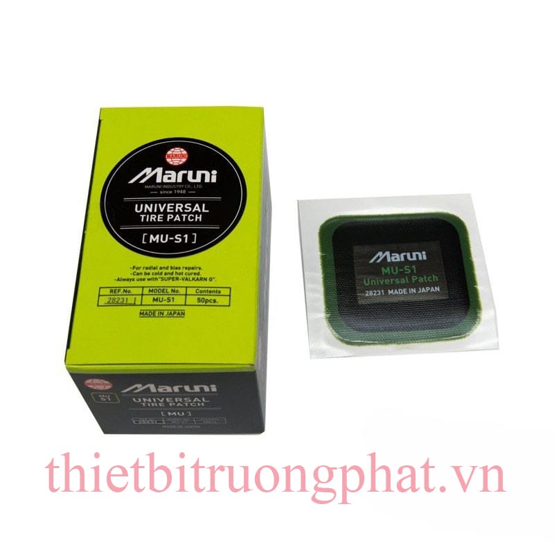 Miếng vá lốp Maruni là thương hiệu miếng vá vá số 1 tại Nhật bản nói riêng và một trong những loại miếng vá tốt nhất thế giới nói chung.Miếng vá lốp Maruni luôn đảm bảo mọi yêu cầu khắt khe nhất, với độ bền cao, chất lượng vượt trộị, phù hợp với mọi loại xe và được rất nhiều người tin dùng.Sau đây công ty TNHH Thiết Bị Và Phụ Tùng Trường Phát xin gửi tới một số ưu điểm và thông số kỹ thuật để bạn hiểu rõ hơn về miếng vá lốp.